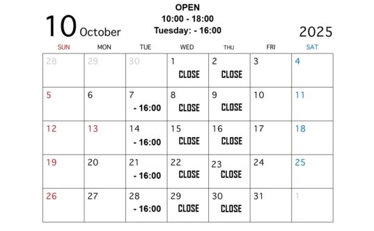 10月の営業カレンダー